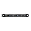 Шасси приемника полной стойки содержит два независимых приемника и предлагает питание антенны, функцию сканирования частоты и ИК-синхронизации, переключатель наземного подъема и разъем для наушников на передней панели.