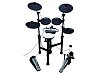 Электронная ударная установка. 10” сетчатый двухзонный малый барабан, 8” сетчатые двухзонные томы (2шт), 10” сетчатый двухзонный напольный том, 8” сетчатый пэд бас-барабана. 12” двухзонные тарелки (3шт: hi-hat, crash1, crash2). 13” трехзонная тарелка Ride. Стойка хай-хета. Педаль для бас-барабана. Прочная и устойчивая алюминиевая рама. 30 пресетов барабанных установок. 467 звуков барабанов, тарелок и перкуссии. 15 встроенных аккомпанементов. Рекордер. Метроном. Входы: CD/MP3/Aux , USB/MIDI, Лине