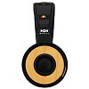 Комфортные ультра-мягкие амбушюры сделаны из натуральной кожи. Помимо этого, на кожаном оголовье  присутствуют дизайнерские надрезы сквозь которые видны зелено, желто, красная расцветка. Бамбуковая вставка на чашках придает наушникам солидный вид. А тканевая оплетка кабеля в яркой расцветке не только подчеркивает стильный дизайн, но и предотвращает спутывание. На кабеле трёх-кнопочный пульт управления.  40мм динамики выдают мощный и чистый звук. В комплекте находится чехол для наушников. Совместимость с Apple устройставами.