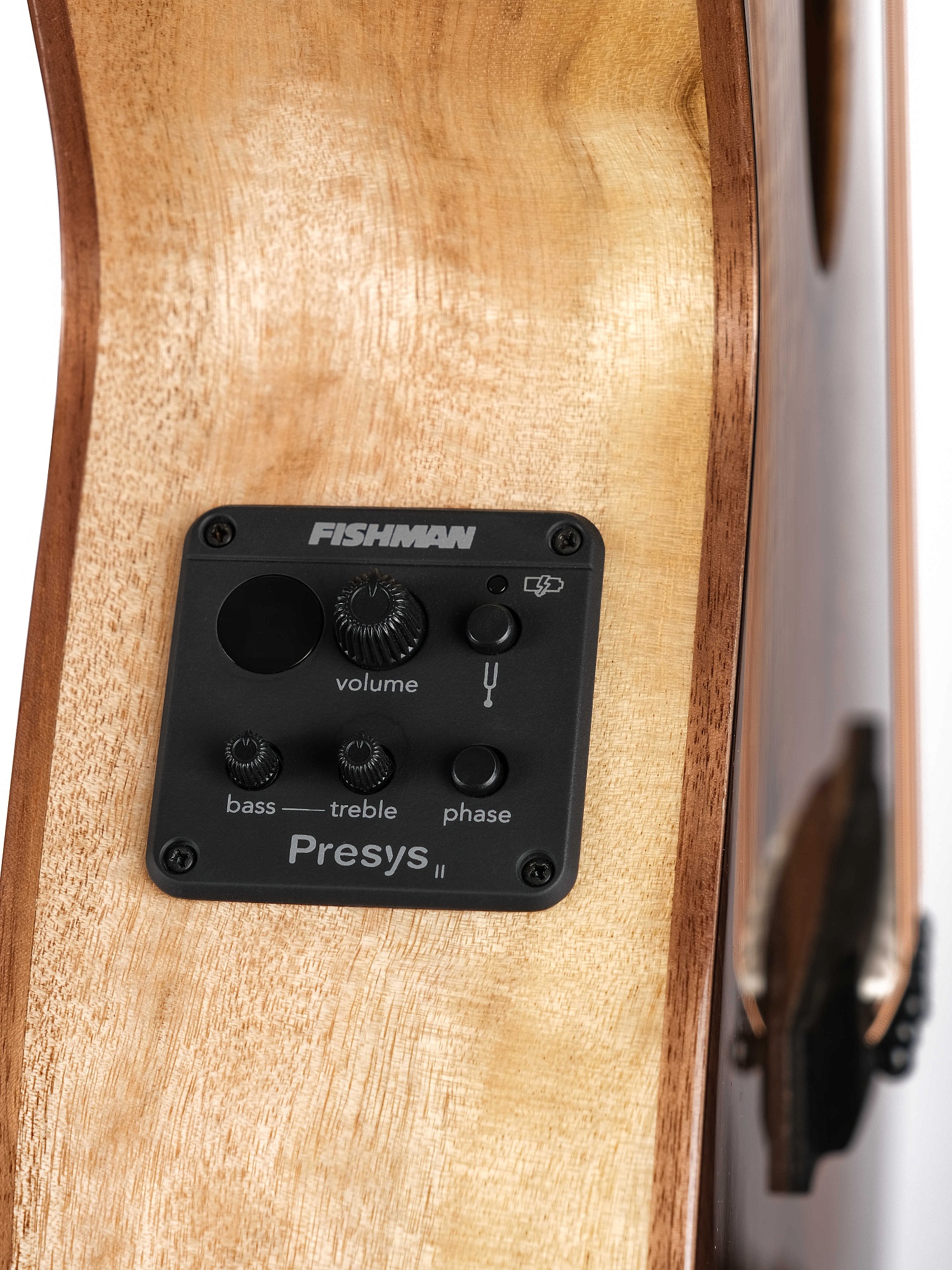 Предусилитель Fishman Presys II с двухполосным эквалайзером, встроенным тюнером и управлением фазой - для эффективной настройки звучания и бесшумной работы во время живых выступлений.