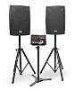Профессиональный звукоусилительный комплект - 2 активные широкополосные системы, активный сабвуфер, 2 стойки-треноги, пятиметровые кабели